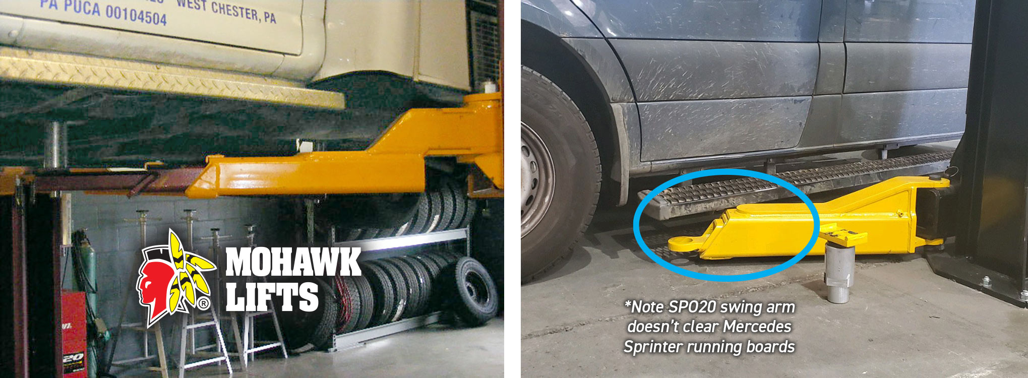 Mohawk’s two post lifts range in capacity from 7,000-30,000 lbs. They come in the following capacities; 7,000 lbs., 10,000 lbs., 12,000 lbs., 16,000 lbs., 20,000 lbs., 26,000 lbs. and 30,000 lbs.